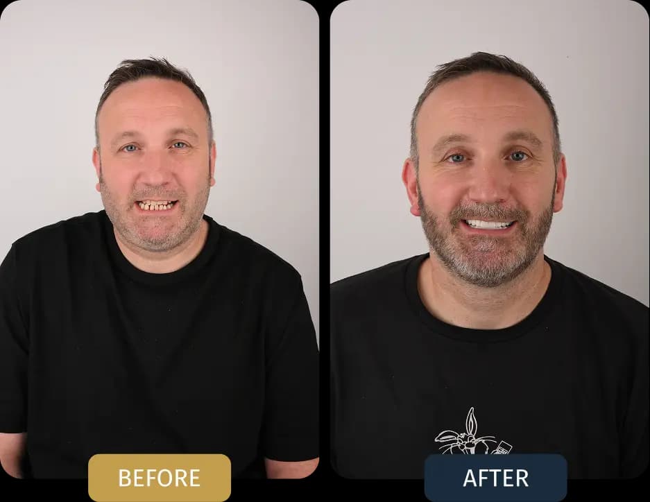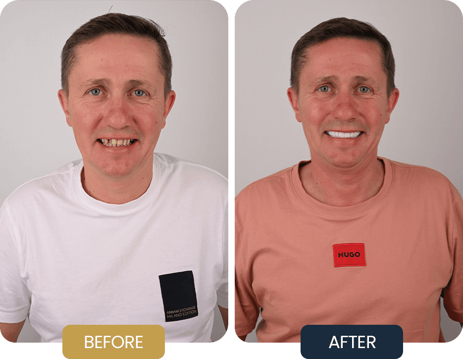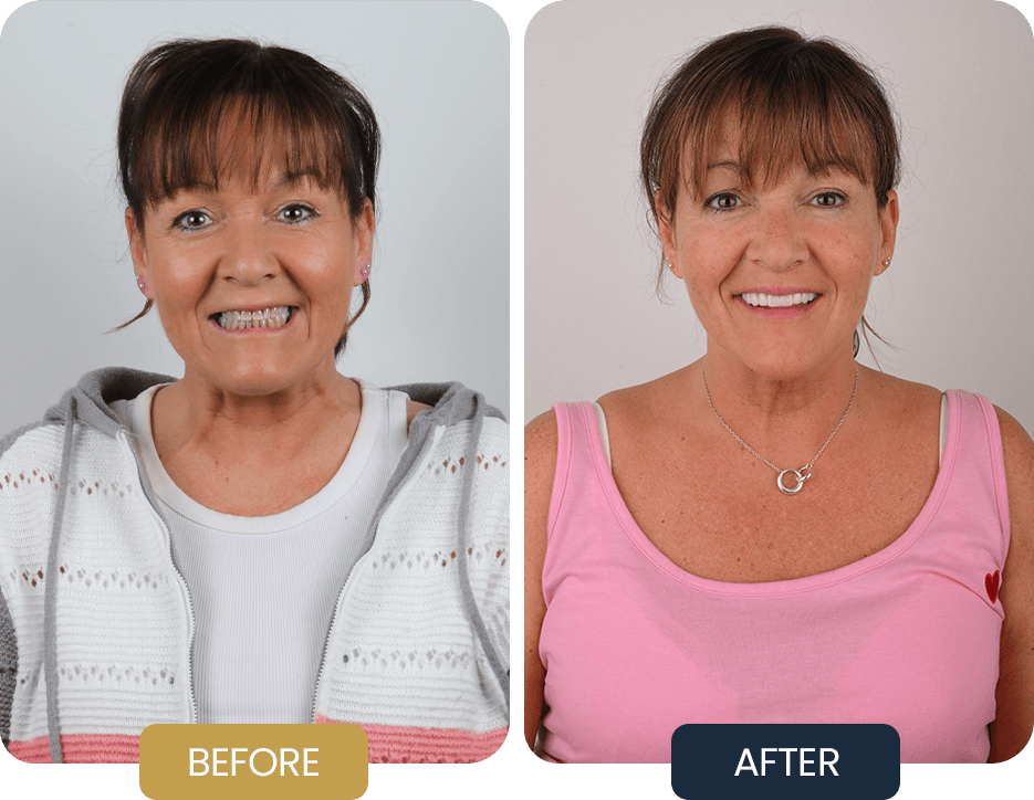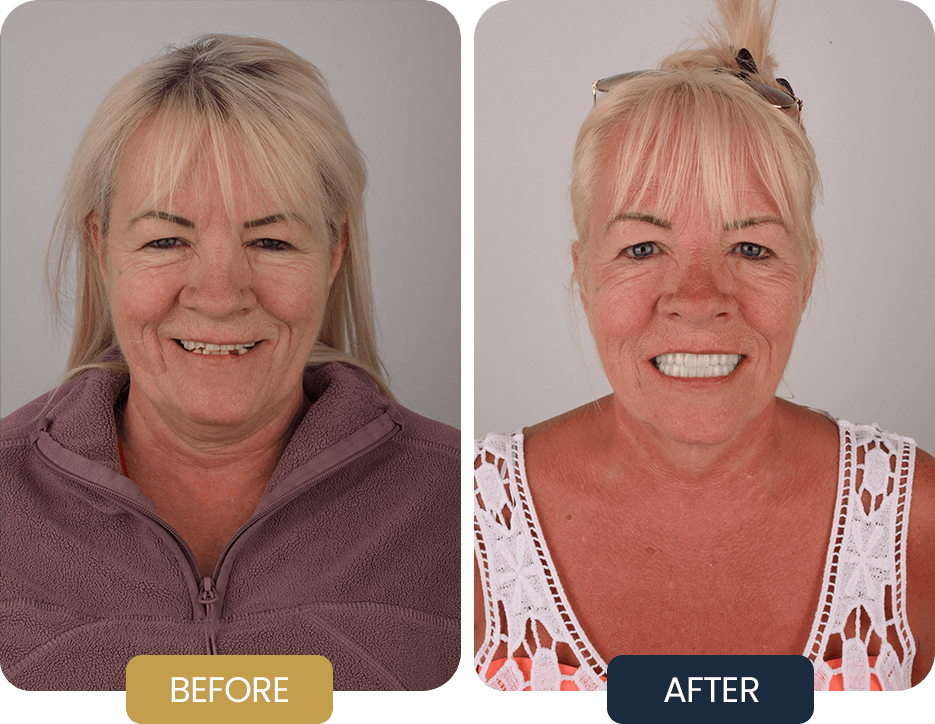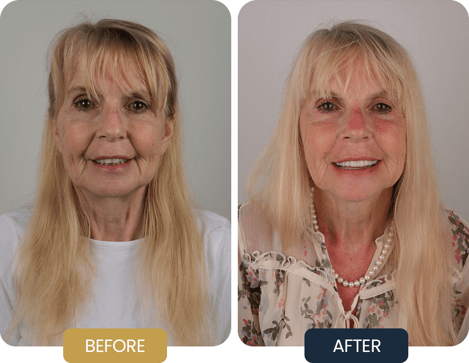 Fay underwent full arch rehabilitation with an All on 6 implant treatment in both the upper and lower jaws.