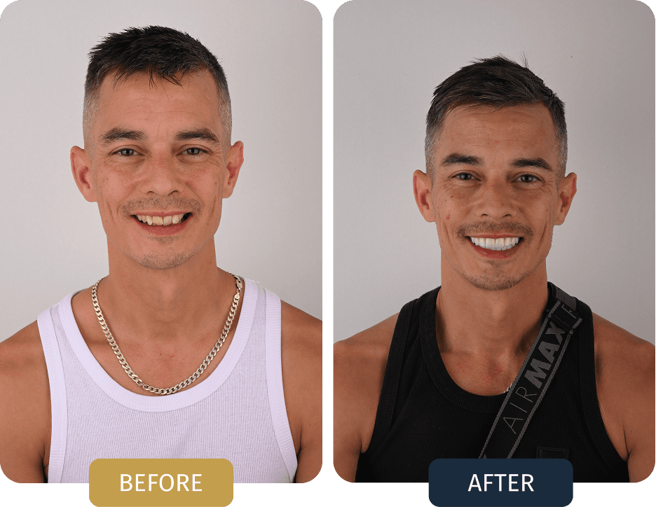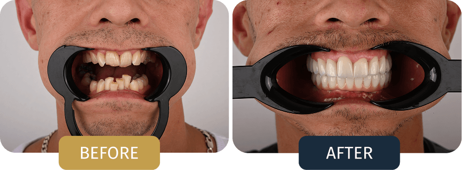 Damian presented with significant tooth damage and missing teeth in the lower jaw, resulting in reduced chewing efficiency and long term functional instability.