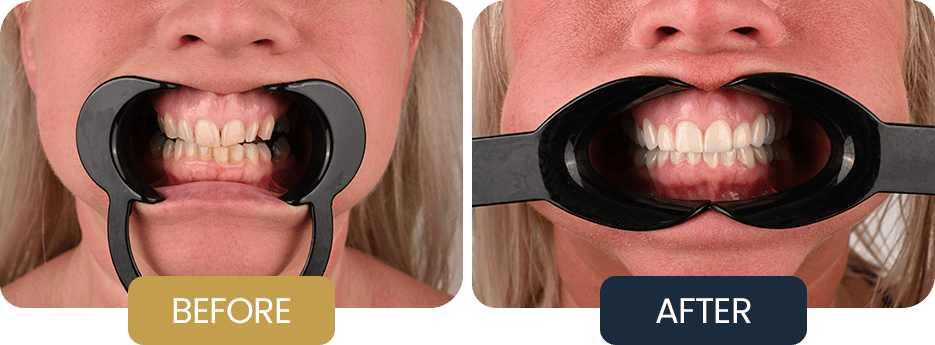 Twenty eight dental crowns were then planned to rebuild the bite, correct tooth shape and alignment, and create a balanced, functional smile across both jaws.