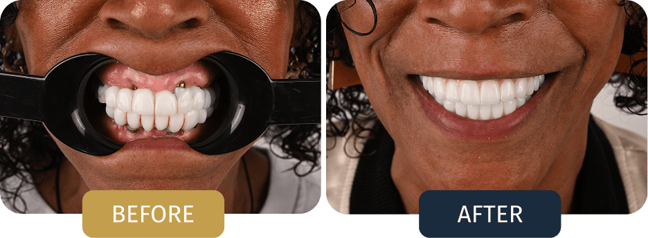 Following treatment, fixed teeth were placed to restore natural function, facial support, and aesthetics. The result was a stable, comfortable, and natural looking smile designed to improve both daily comfort and long term oral health.