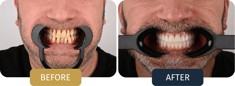 Several teeth required additional stabilisation due to previous decay and structural weakness, including one tooth that required root canal treatment followed by fibre post and core reinforcement.