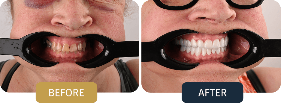 Kerry presented with multiple heavily restored teeth, failing fillings, and general wear across both arches, leading to reduced function and an uneven bite.