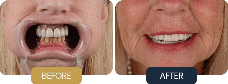 This approach allowed comprehensive rehabilitation without unnecessary full arch implant surgery, focusing instead on targeted implant placement and full crown restoration.