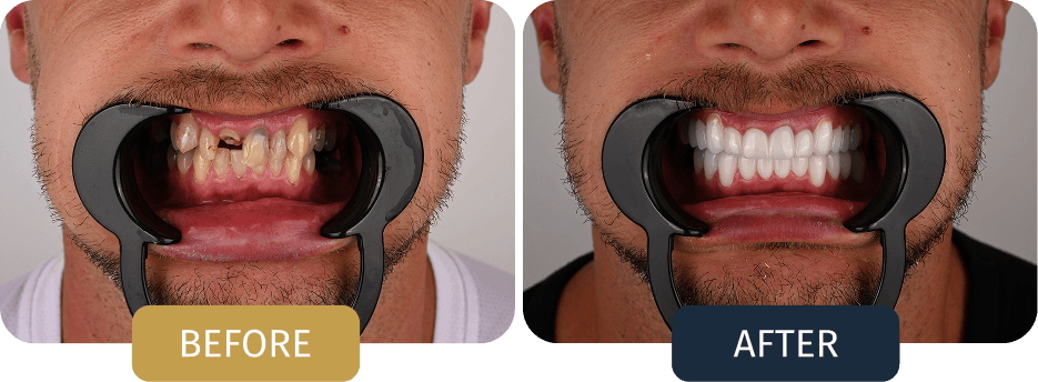 Michael presented with multiple heavily restored teeth, recurrent decay, and structurally weakened posterior teeth. Several existing restorations had reached the end of their lifespan, resulting in compromised bite stability and an increased risk of further tooth loss.