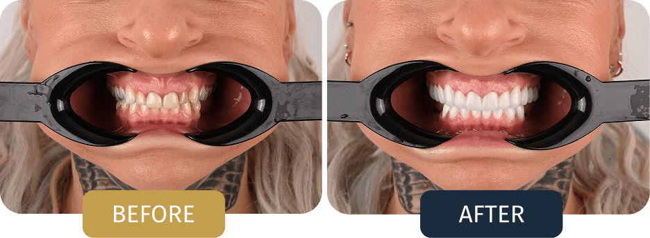 Perdita underwent the first stage of her full mouth rehabilitation using four strategically placed dental implants combined with twenty four custom made crowns.