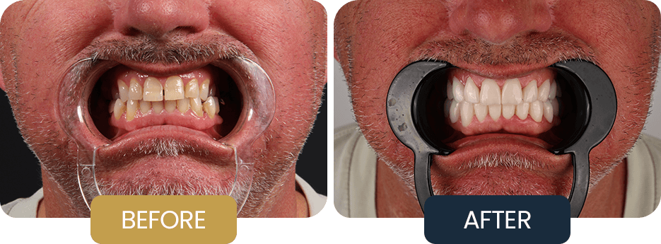 Following aftercare treatment, Shaun regained comfortable chewing function and improved confidence in his restorations. The outcome provided a stable, functional, and maintainable solution supported by a structured aftercare and follow up approach focused on long term performance.