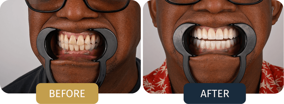 Sylvanus presented with advanced tooth loss and failing restorations, particularly in the lower jaw, resulting in reduced chewing efficiency and compromised long term stability.